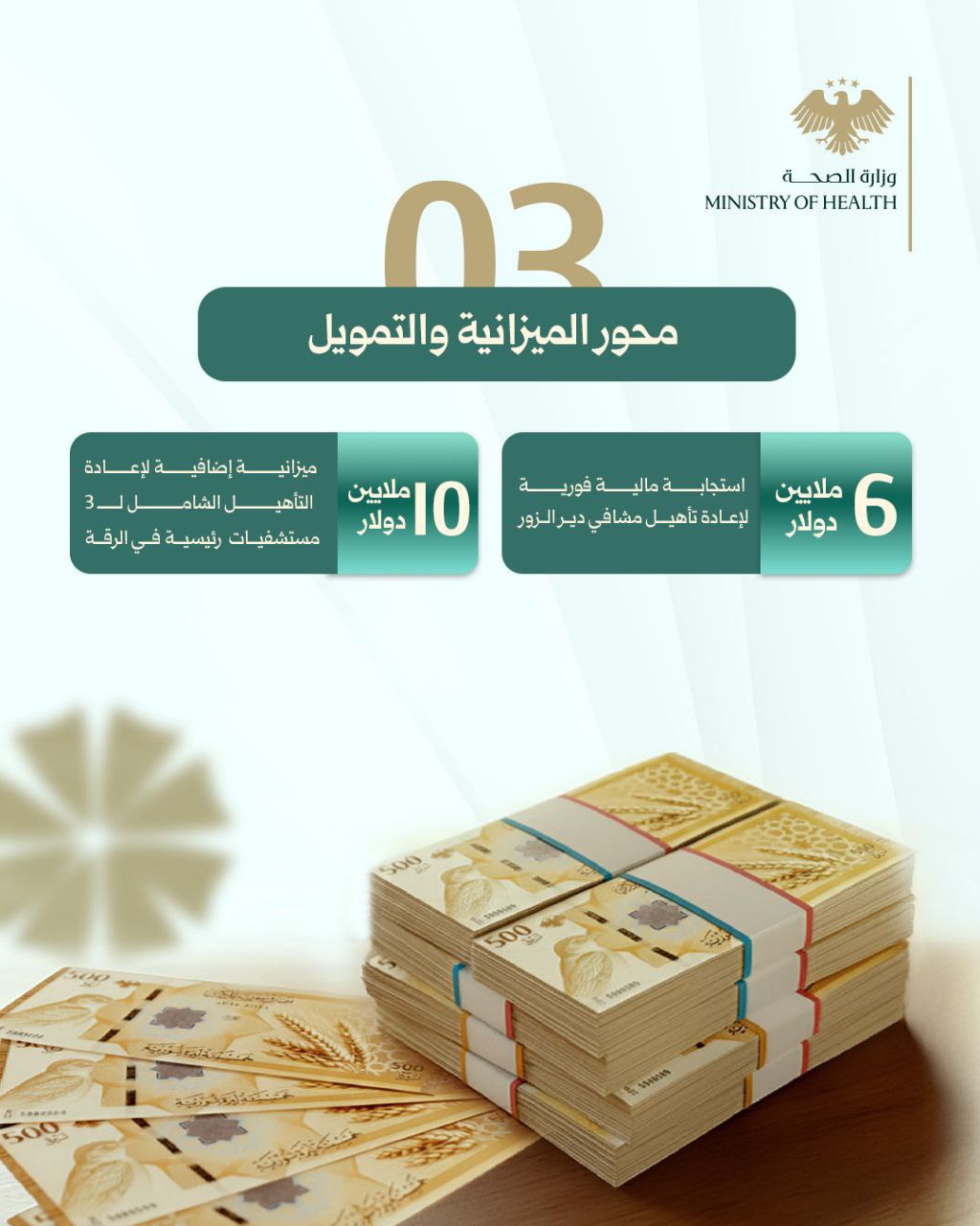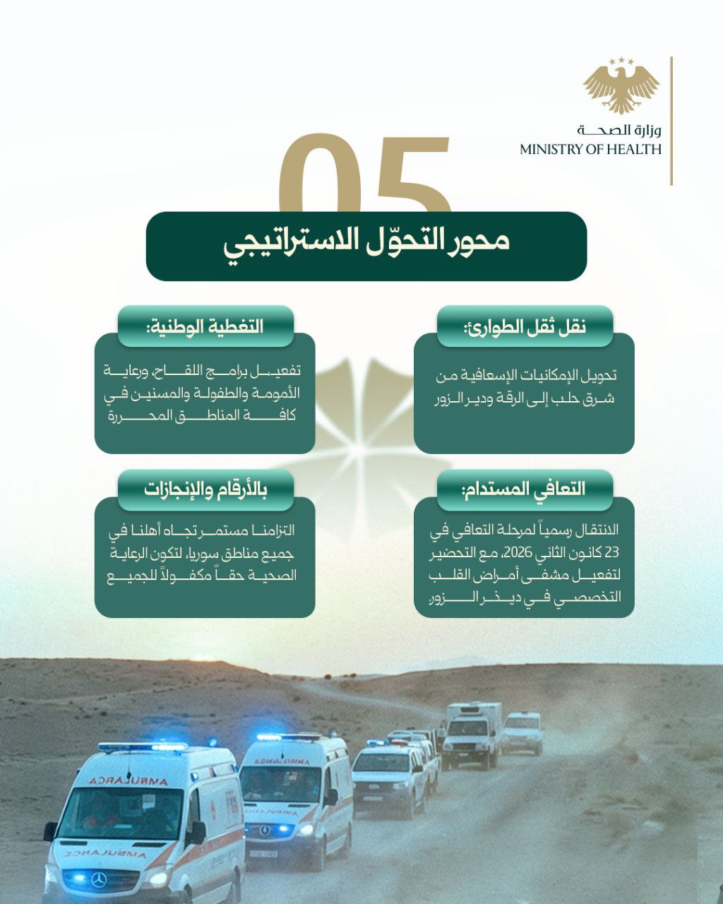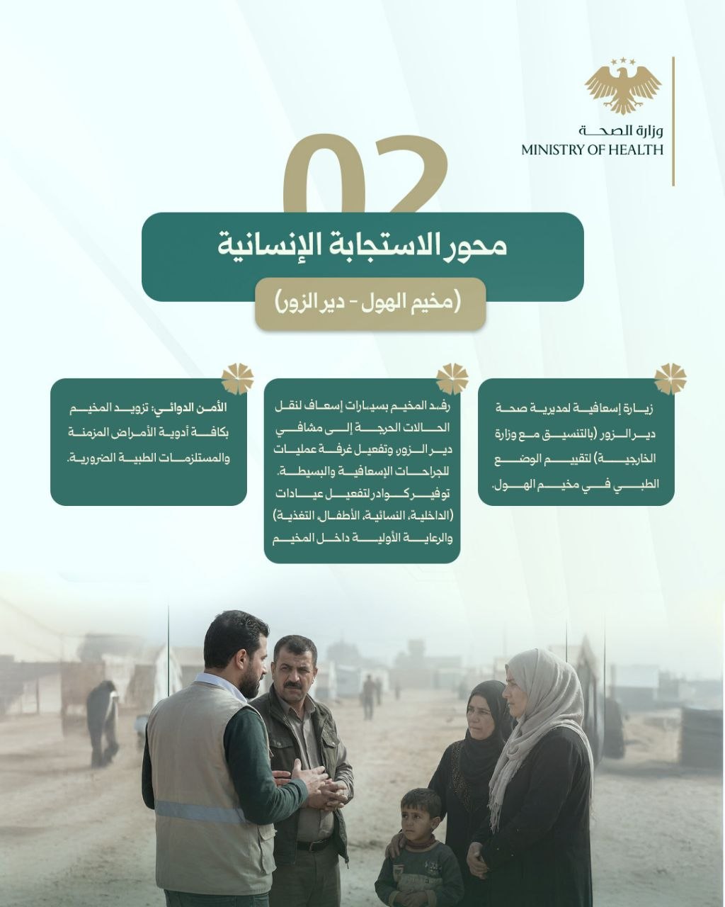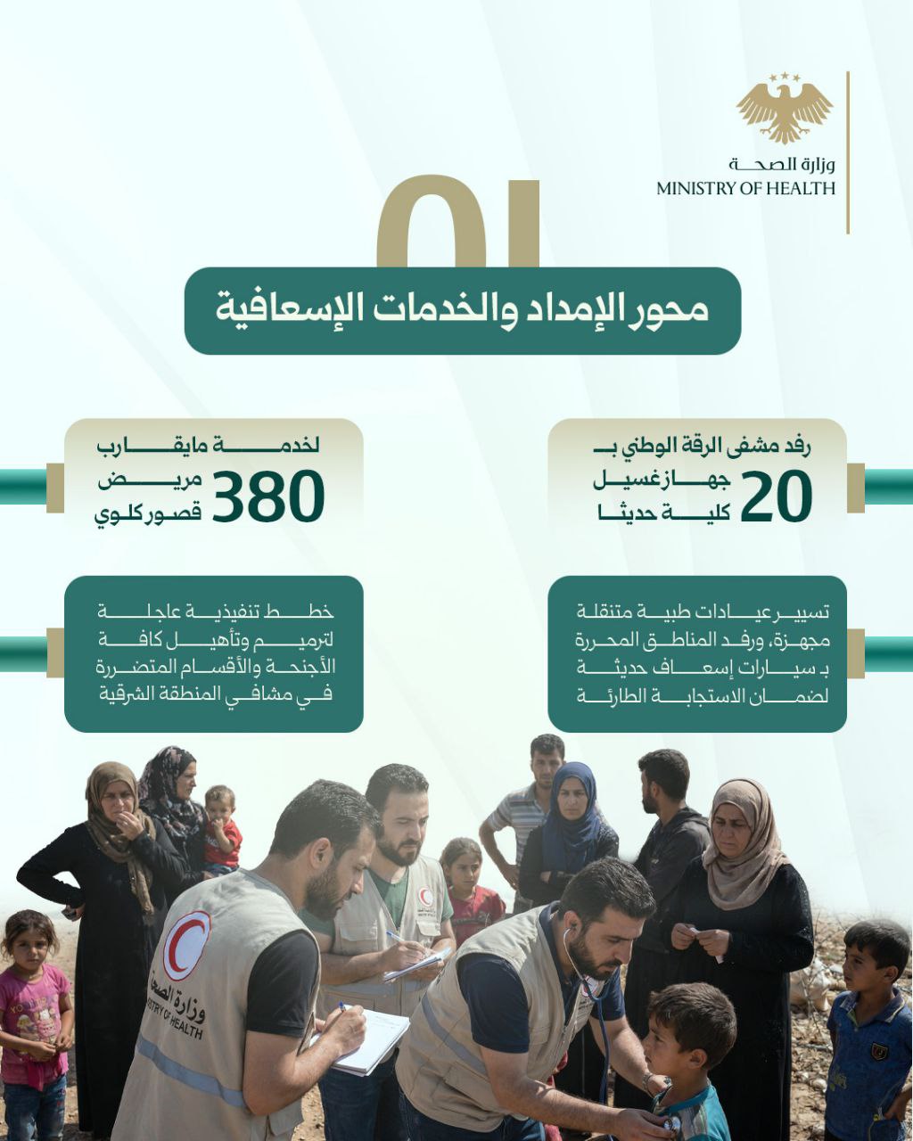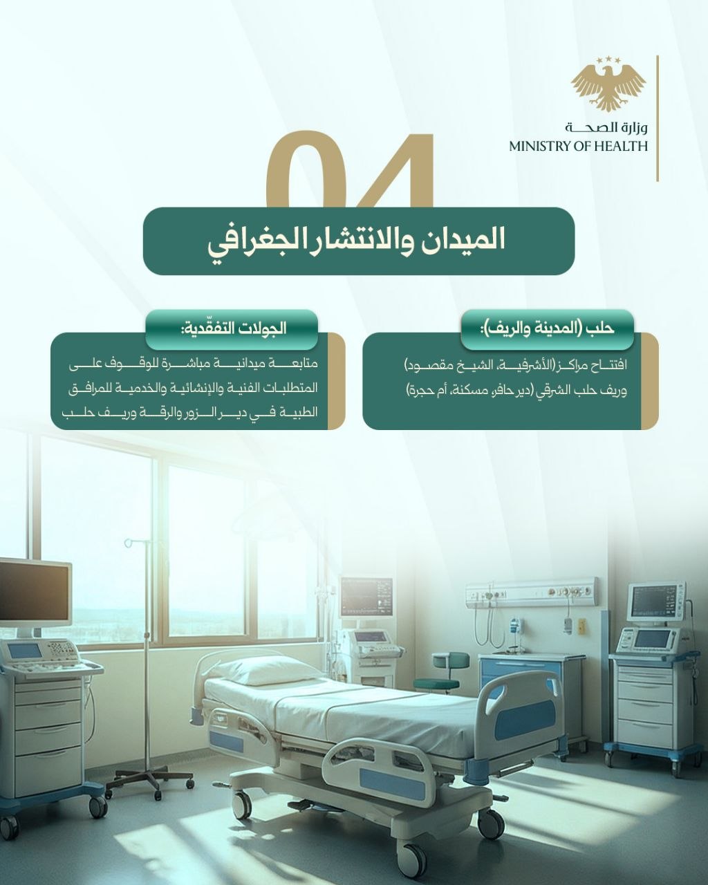 بخطواتٍ ميدانية وعمليّة، تواصلُ وزارة الصحة تحرّكها العاجل في المناطق المحررة حديثاً - الرقة، دير الزور، وريف حلب - لإعادة شريان الحياة إلى الخدمات الطبّية.