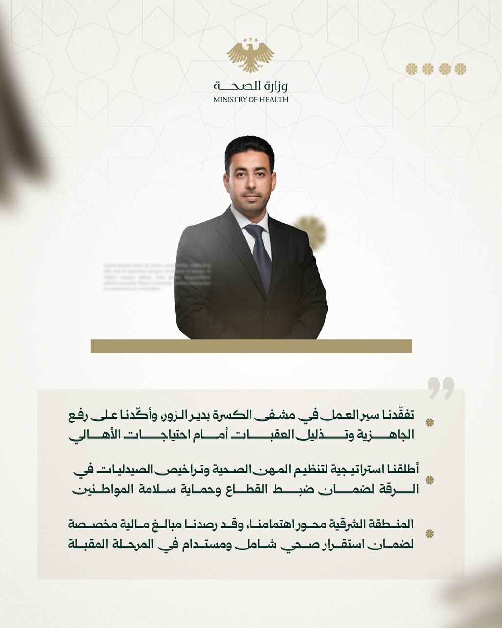 وزير الصحة الدكتور "مصعب العلي": "لأن الإنسان أولاً".. حزمة دعم فوري واستراتيجية صحية شاملة للمنطقة الشرقية.